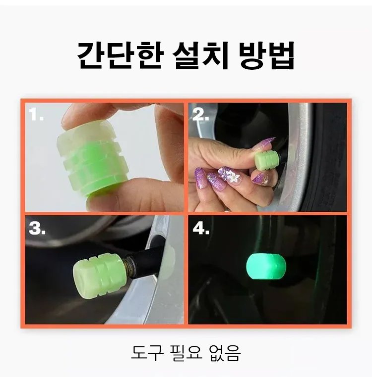 고품질 ABS 소재, 뛰어난 내구성, 타이어 밸브 보호, 빛나는 형광 디자인, 밤에 쿨하게~ 바로 구매시 ₩39,900/4+4